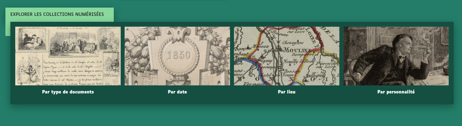 Porté par la Communauté d’agglomération de Moulins, le portail Patrimoines Moulins Communauté s’inscrit dans un paysage documentaire lié par des partenariats et des collaborations naturelles et fréquentes. Ainsi, en complément des ressources et services ici proposés, on pourra s’orienter également, selon les recherches et les besoins, en particulier vers :