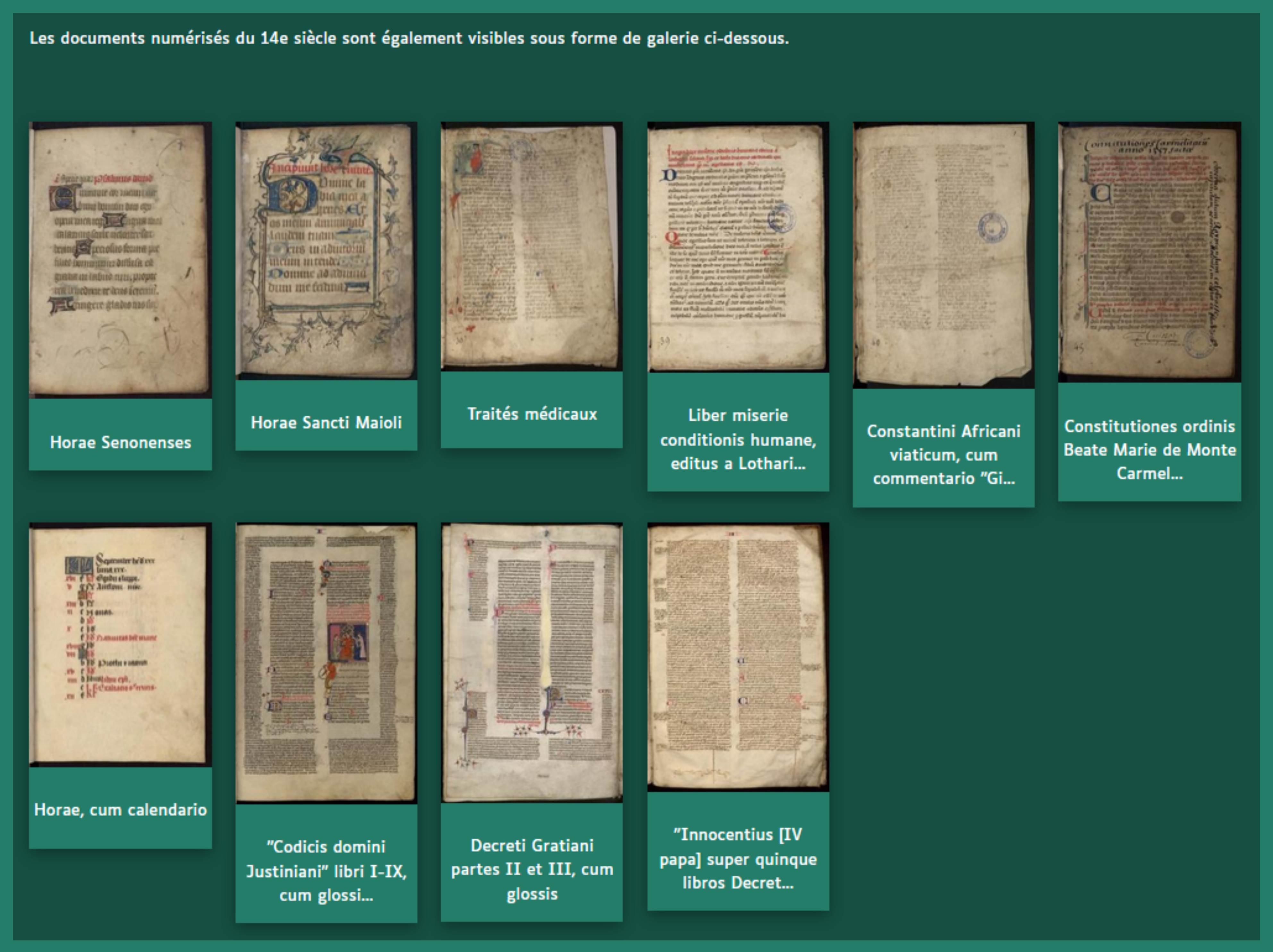 Cliquez sur le titre ou la vignette d’un des documents pour accéder à sa notice et consulter sa numérisation.